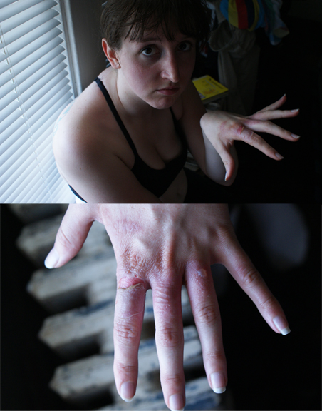 Elise burned by coffee at work